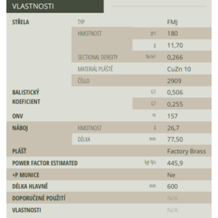 Celoplášťová střela. Olověné jádro je překryto kovovým pláštěm. Vzhledem k pevné konstrukci vytváří střela hladký průstřel bez devastace tkáně, neboť se nedeformuje při zásahu cíle.
